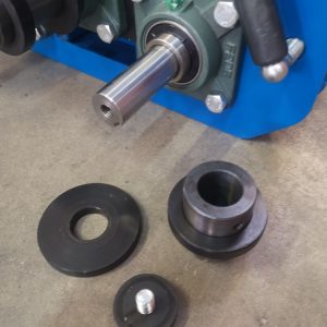 Arbres Ø30mm sur roulements à billes .Galets réglables via une flasque coulissante. Conception PRP Machines.