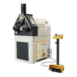 Cintreuse à 3 entrainements , le moto-réducteur ( 400V – 50hz) actionne les deux rouleaux inférieurs ( trempés et rainurés )qui entrainent le profilé entre les trois rouleaux.